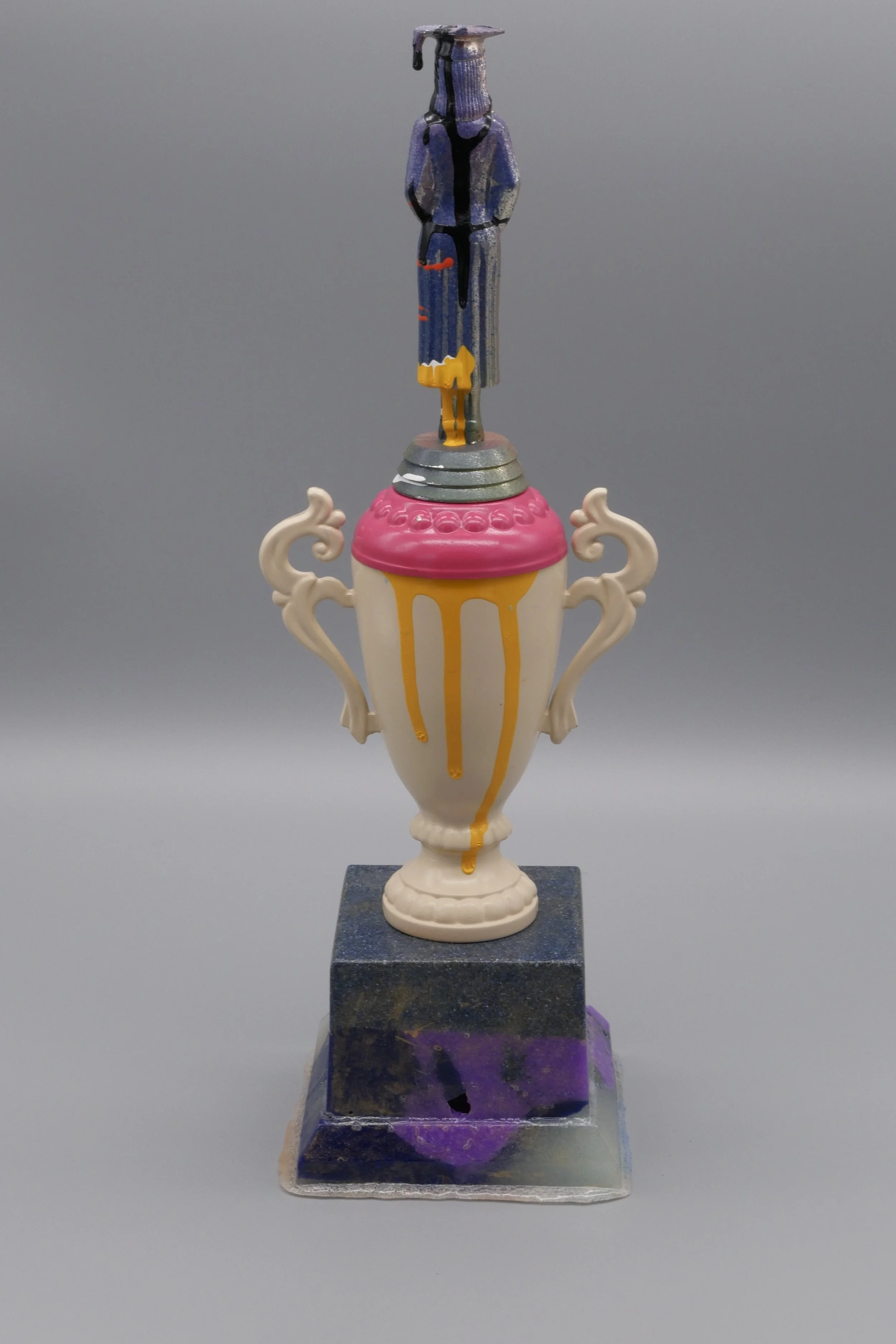 Resin, Sand, Candy, Sprinkles, anything else you can think of and spray paint.